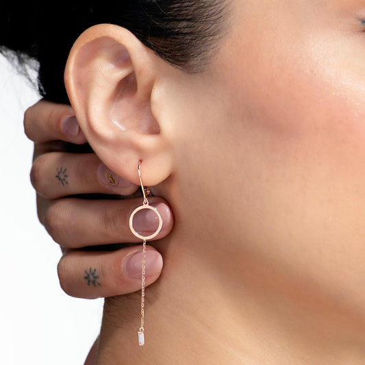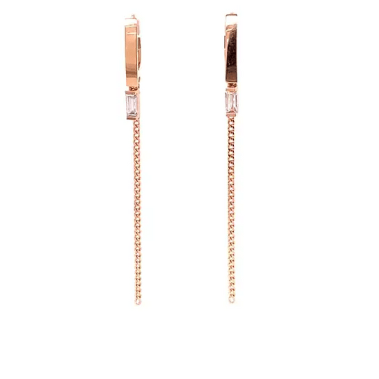 Baguette Chain Dangle Gold Earrings